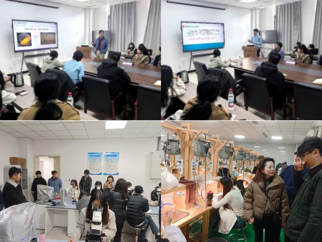 当天下午,国首副总经理、技术负责人-正高级工程师罗跃平以《首饰主要标准介绍及检测热点问题》为题,结合行业实际与检测难点开展学术讲座,与师生展开互动交流,解答技术疑问。国首标准理化部副部长王健介绍了《贵金属首饰及宝玉石检测员培训》项目,详细解读了培训考核标准和行业价值,提升师生的专业视野。宝石与材料工艺学专业大四学生、教师代表及珠宝首饰检测行业多名校友参加了学术交流会。