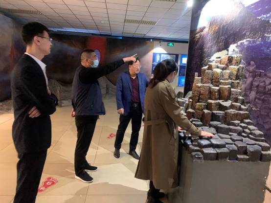李艳院长和王旭辉书记带领梦金园黄金珠宝集团人力资源刘总和王伟经理参观学校地球科学博物馆)