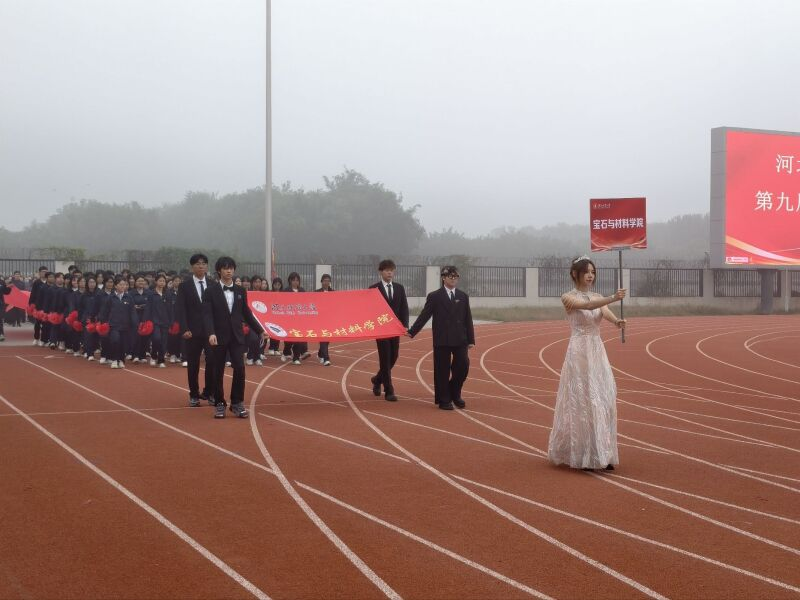 入场式上,学生方队意气风发,手持自己精心设计打磨的掐丝珐琅工艺品,以金丝为笔,勾勒出青春的轮廓和梦想的蓝图,以彩砂为韵,填充着学识的斑斓和创新的激情,巧手传承古老技艺,匠心点亮未来之路。当“志存高远,锲而不舍,兼容并蓄,开拓创新”的院训喊出时,铿锵之音如金石掷地,响彻赛场云霄,展现了宝石学子的蓬勃朝气、昂扬锐气和责任担当。教师方队步伐稳健,讲台上,他们传道授业、潜心治学;赛场上,他们精神抖擞、风采依旧。