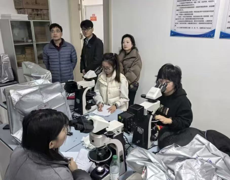 图2刁鑫雨在上岩矿薄片实践课(图中白色衣服)